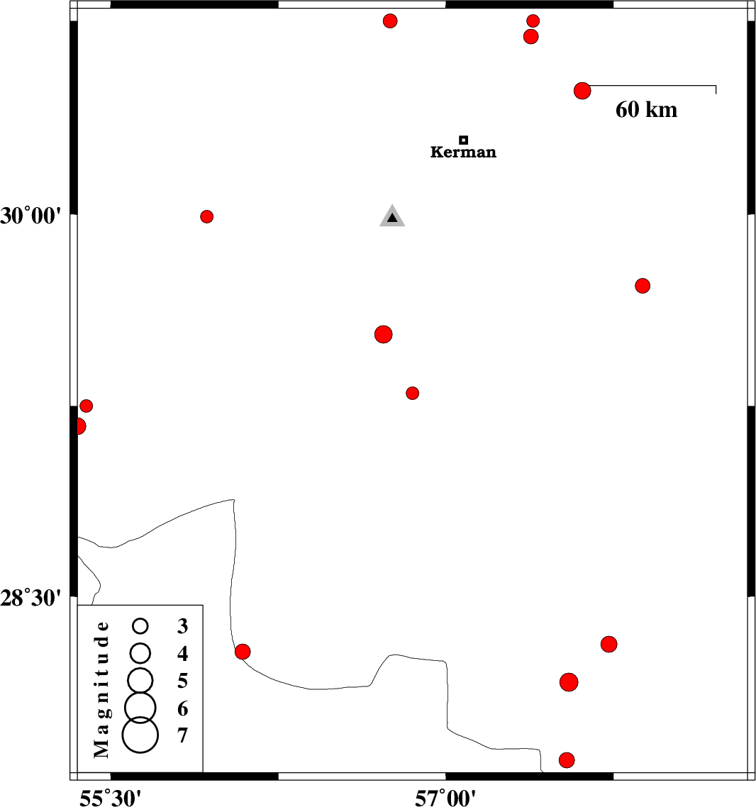 2019/11/24 | 02:11:50.0 | 05:41:50.0 | 29.72 | 57.88 | 14 | ML2.9 | Kerman Province, 82 km North-West of Bam | ||