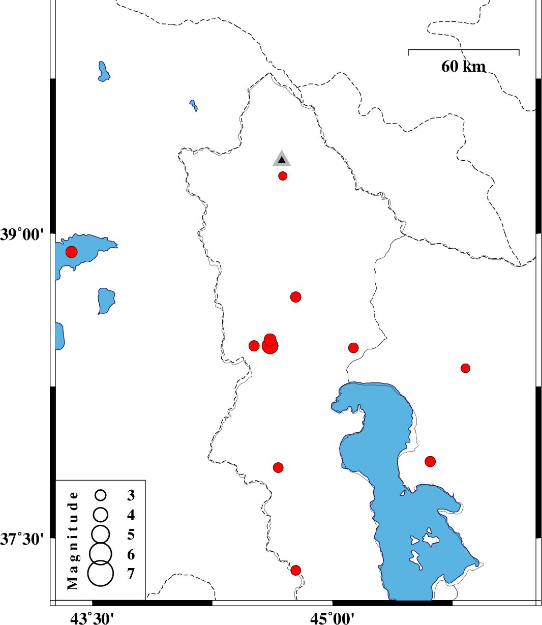 | 2019/11/19 | 00:14:14.9 | 03:44:14.9 | 38.45 | 44.61 | 10 | ML4.5 | Azarbaijan Gharbi Province, 32 km North-West of Salmas | ||