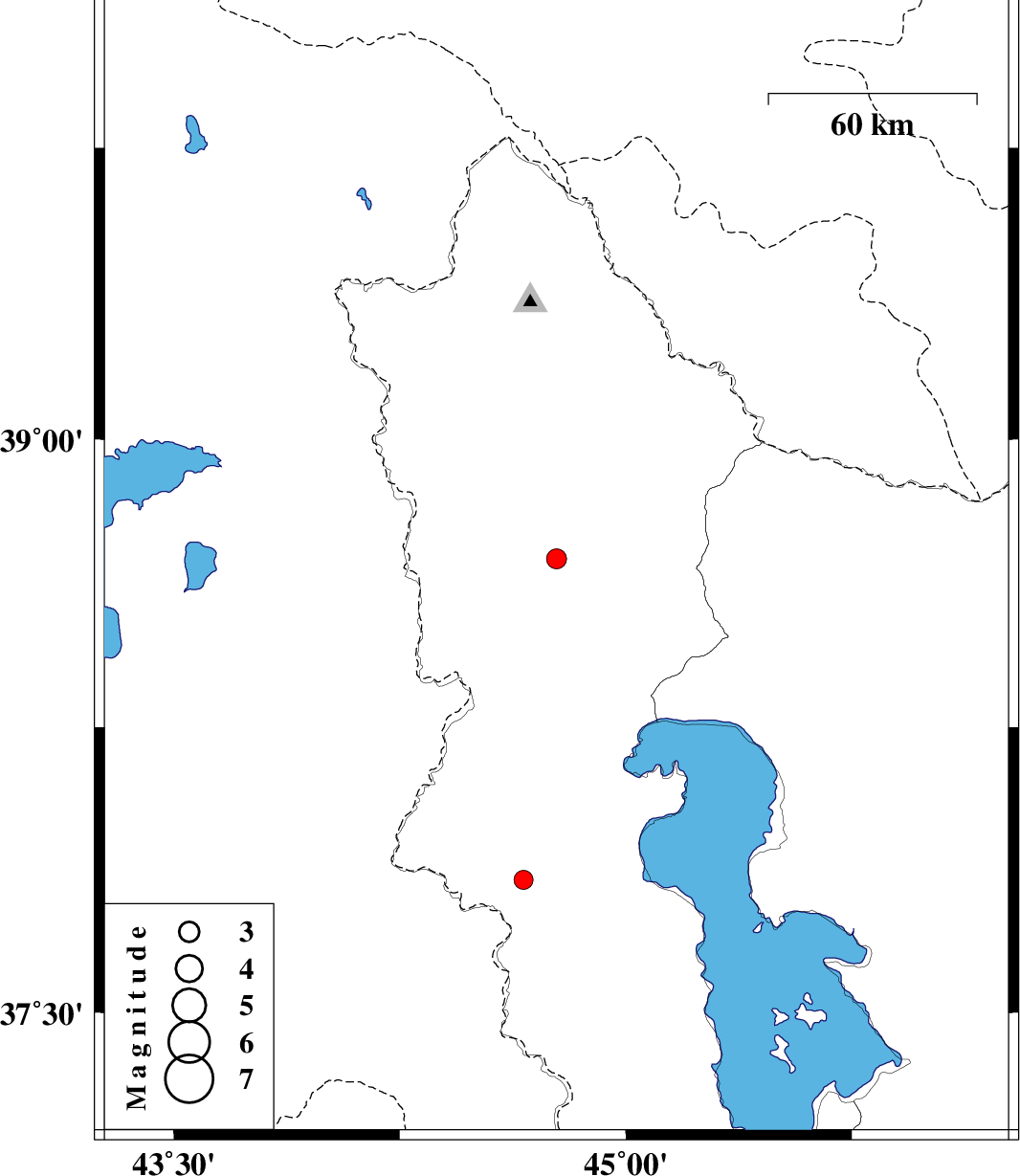 | 2019/12/07 | 06:34:26.0 | 10:04:26.0 | 37.85 | 44.66 | 10 | ML2.8 | Azarbaijan Gharbi Province, 39 km South-West of Salmas |