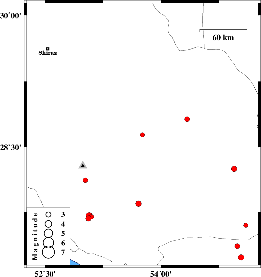 | 2019/12/02 | 14:59:23.8 | 18:29:23.8 | 27.7 | 53.1 | 10 | ML2.7 | Fars Province, 27 km North-East of Mehr | ||