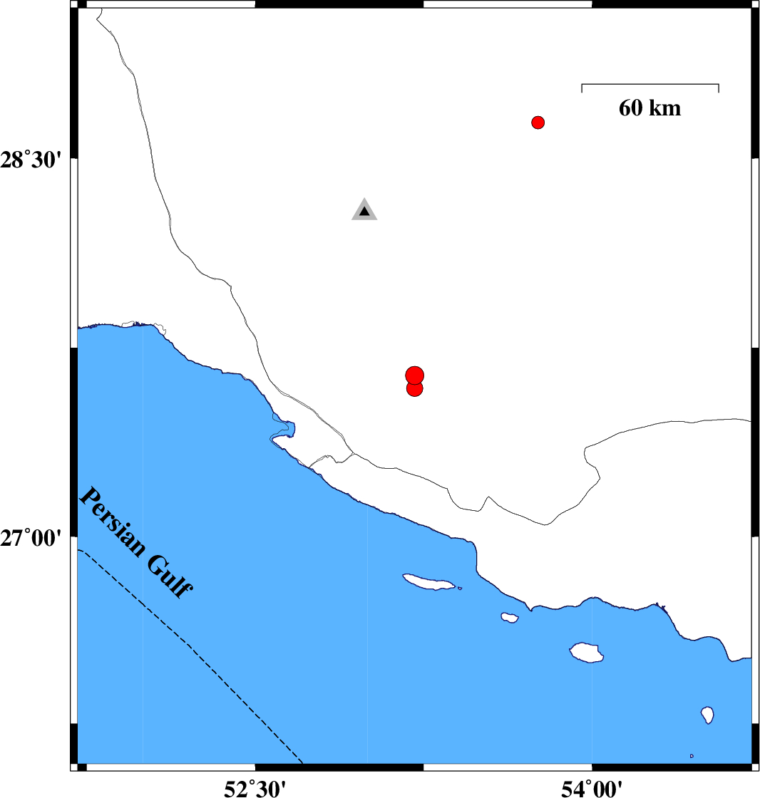 2019/12/22 | 04:45:35.3 | 08:15:35.3 | 27.59 | 53.21 | 17 | ML3.2 | Fars Province, 29 km North of Lamerd | ||