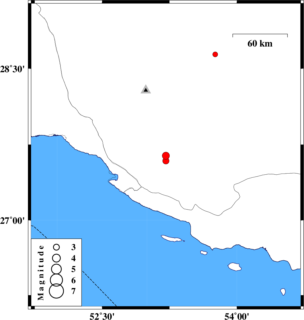 2019/12/22 17:25:21.5 20:55:21.5 27.6453.2110 ML3.7 Fars Province, 34 km North of Lamerd
