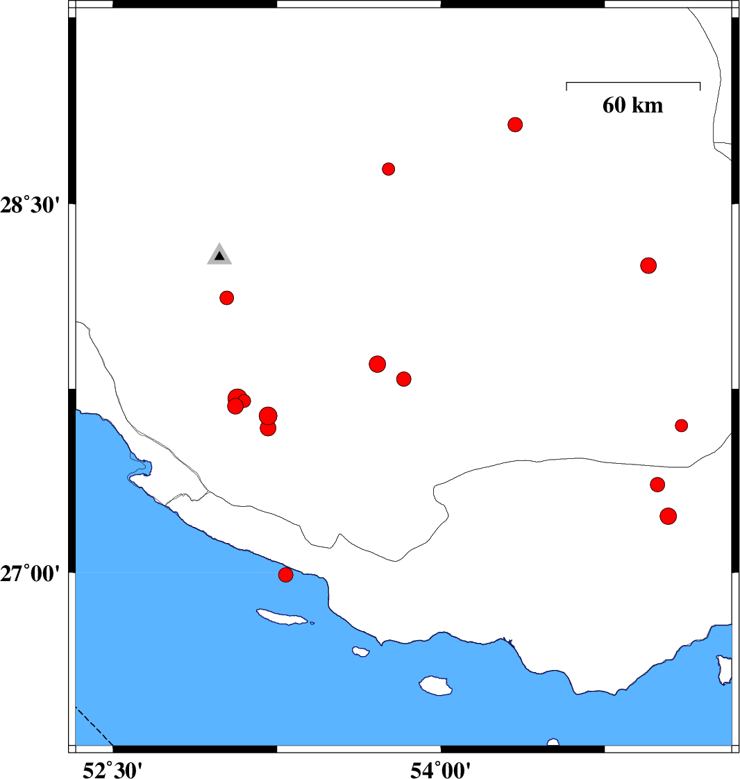 | 2019/12/22 | 04:45:35.3 | 08:15:35.3 | 27.59 | 53.21 | 17 | ML3.2 | Fars Province, 29 km North of Lamerd | ||