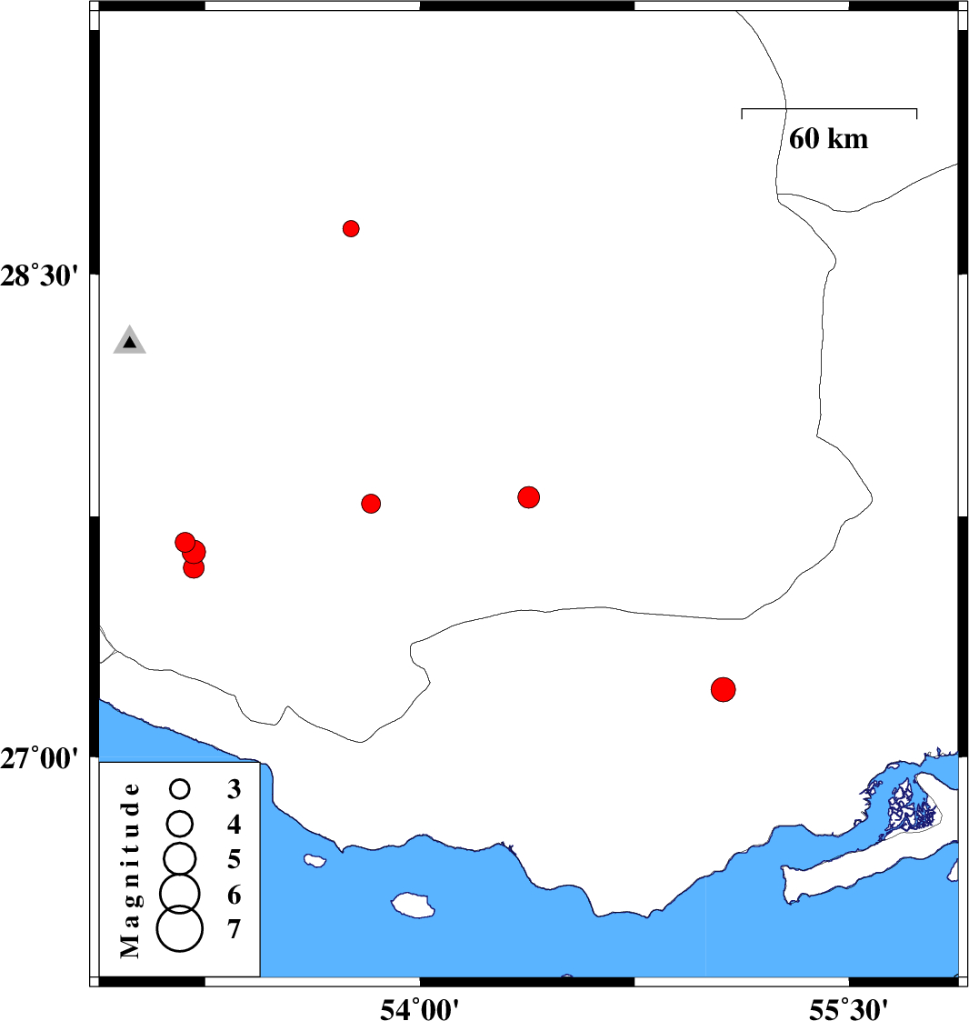 2019/12/22 | 04:45:35.3 | 08:15:35.3 | 27.59 | 53.21 | 17 | ML3.2 | Fars Province, 29 km North of Lamerd | ||