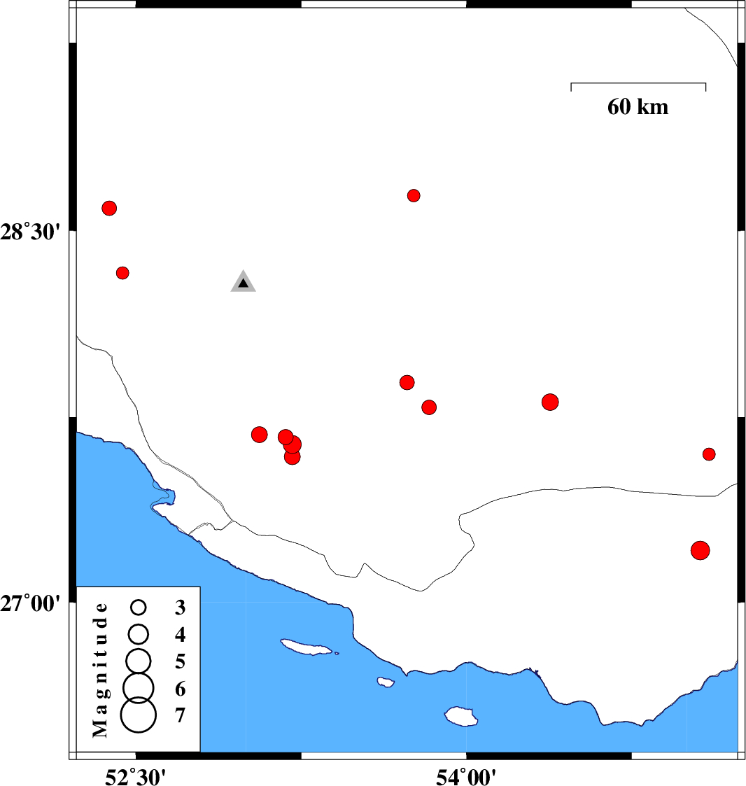 2019/12/22 | 04:45:35.3 | 08:15:35.3 | 27.59 | 53.21 | 17 | ML3.2 | Fars Province, 29 km North of Lamerd | ||