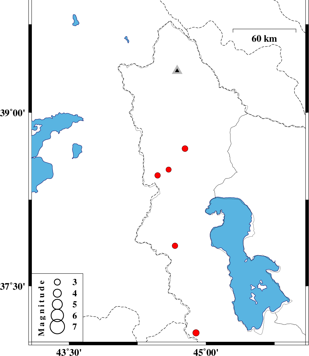 2020/01/06 | 16:49:19.5 | 20:19:19.5 | 38.46 | 44.47 | 14 | ML:2.8 | Azarbaijan Gharbi Province, 40 km North-West of Salmas | ||