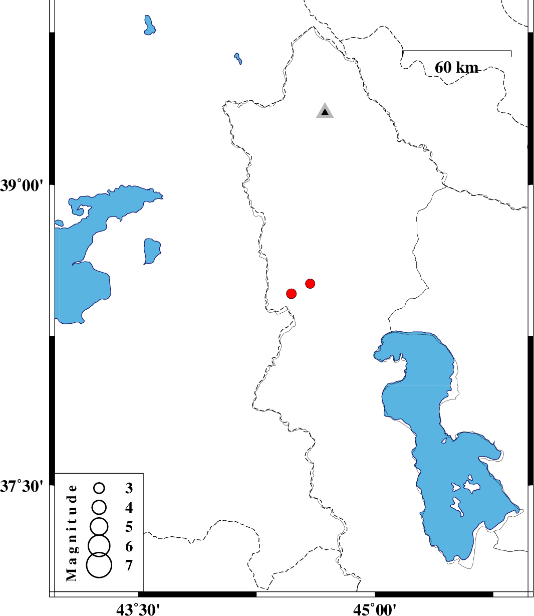 2020/01/06 17:58:28.9 21:28:28.9 38.5144.5910 ML2.7 Azarbaijan Gharbi Province, 32 km -West of Khoy