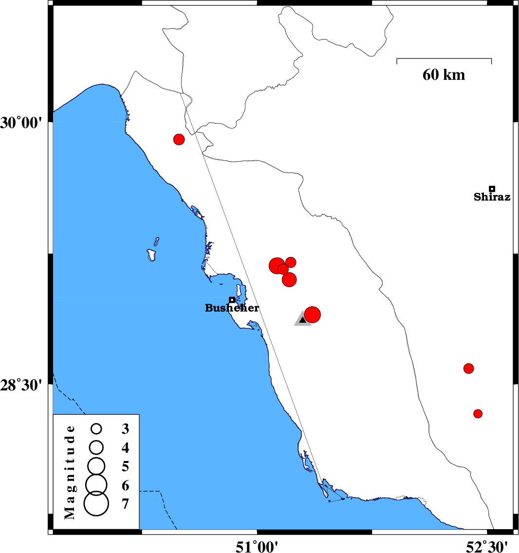 2020/01/08 03:46:46.7 07:16:46.7 29.1651.1710 ML3.1 Bushehr Province, 12 km South of Borazjan