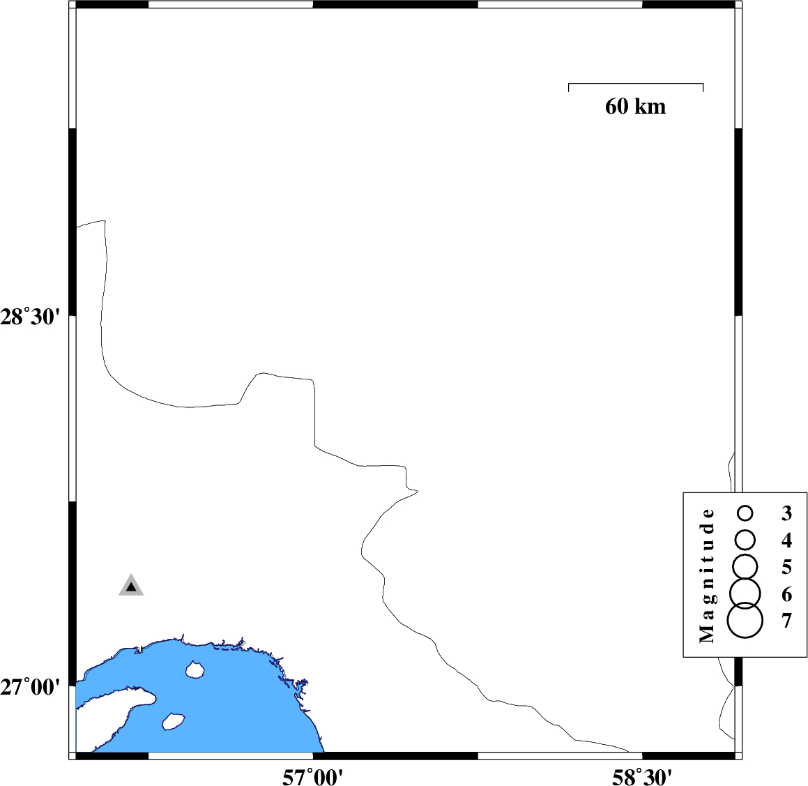 | 2019/12/30 | 13:53:33.6 | 17:23:33.6 | 27.27 | 56.82 | 10 | ML3.9 | Hormozgan Province, 29 km North-West of Minab | ||
