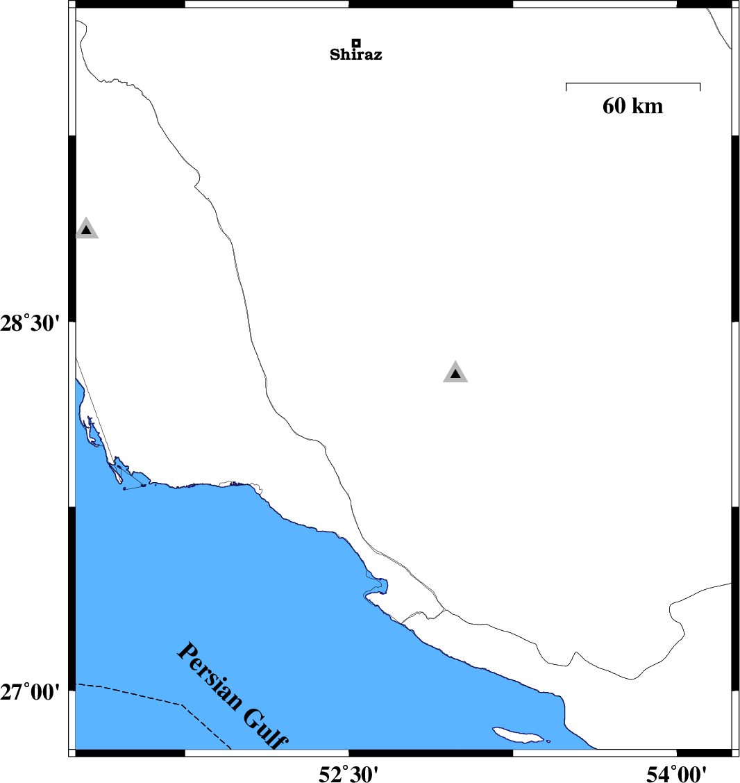 2019/12/27 | 01:53:11.1 | 05:23:11.1 | 28.9 | 51.36 | 10 | ML4.8 | Bushehr Province, 10 km -East of Ahram | ||