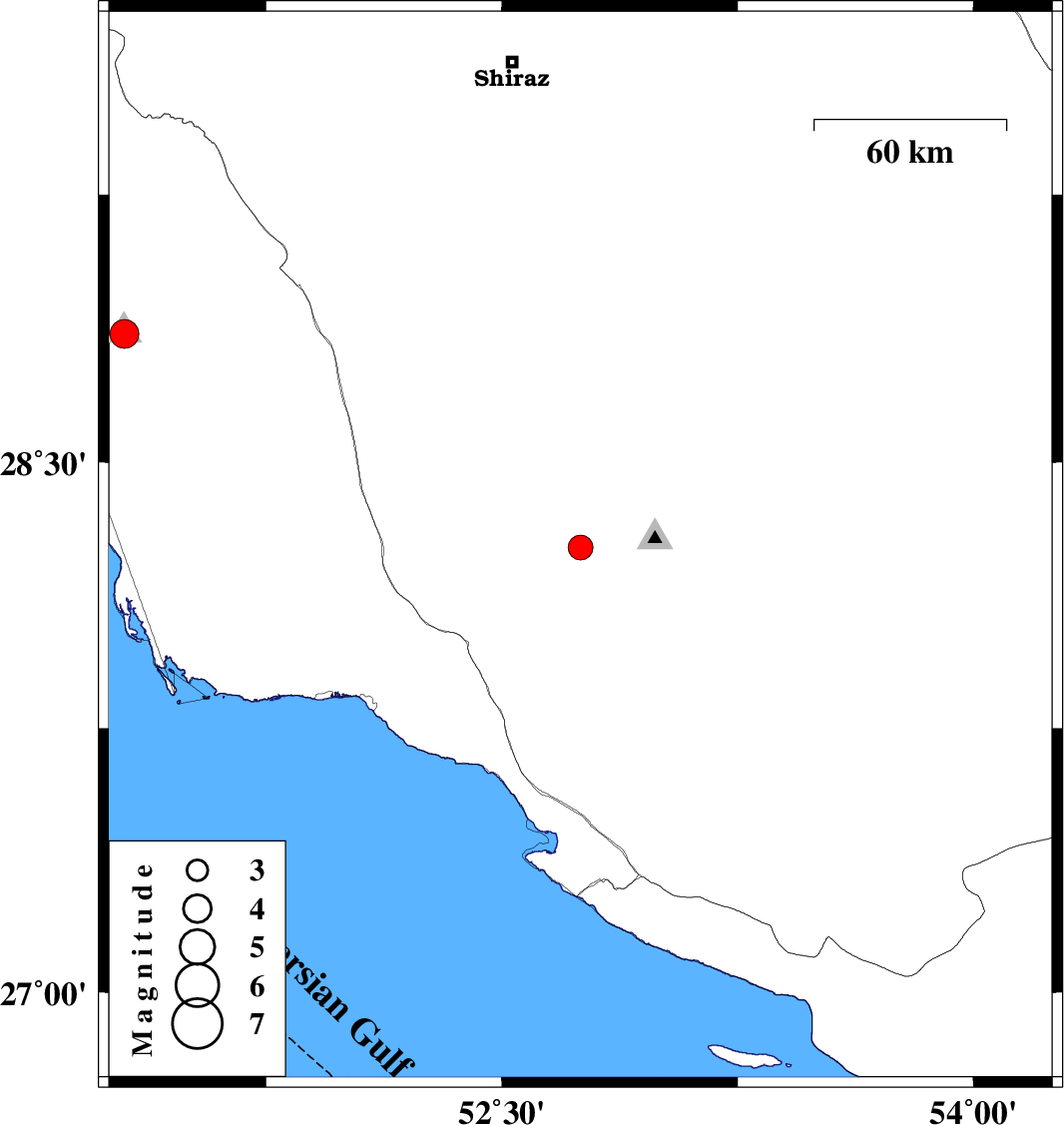 2020/01/12 | 03:01:46.1 | 06:31:46.1 | 28.86 | 51.3 | 10 | ML4.1 | Bushehr Province, 4 km of Ahram |