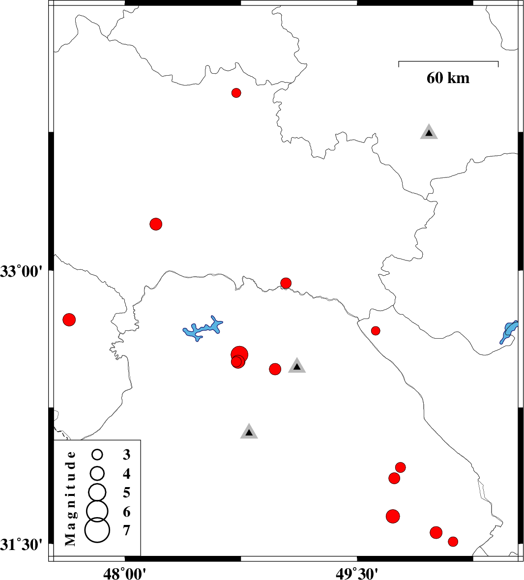 2019/12/22 | 11:11:18.8 | 14:41:18.8 | 32.5 | 48.74 | 12 | ML:3.3 | Khoozestan Province, 37 km -East of Andimeshk |