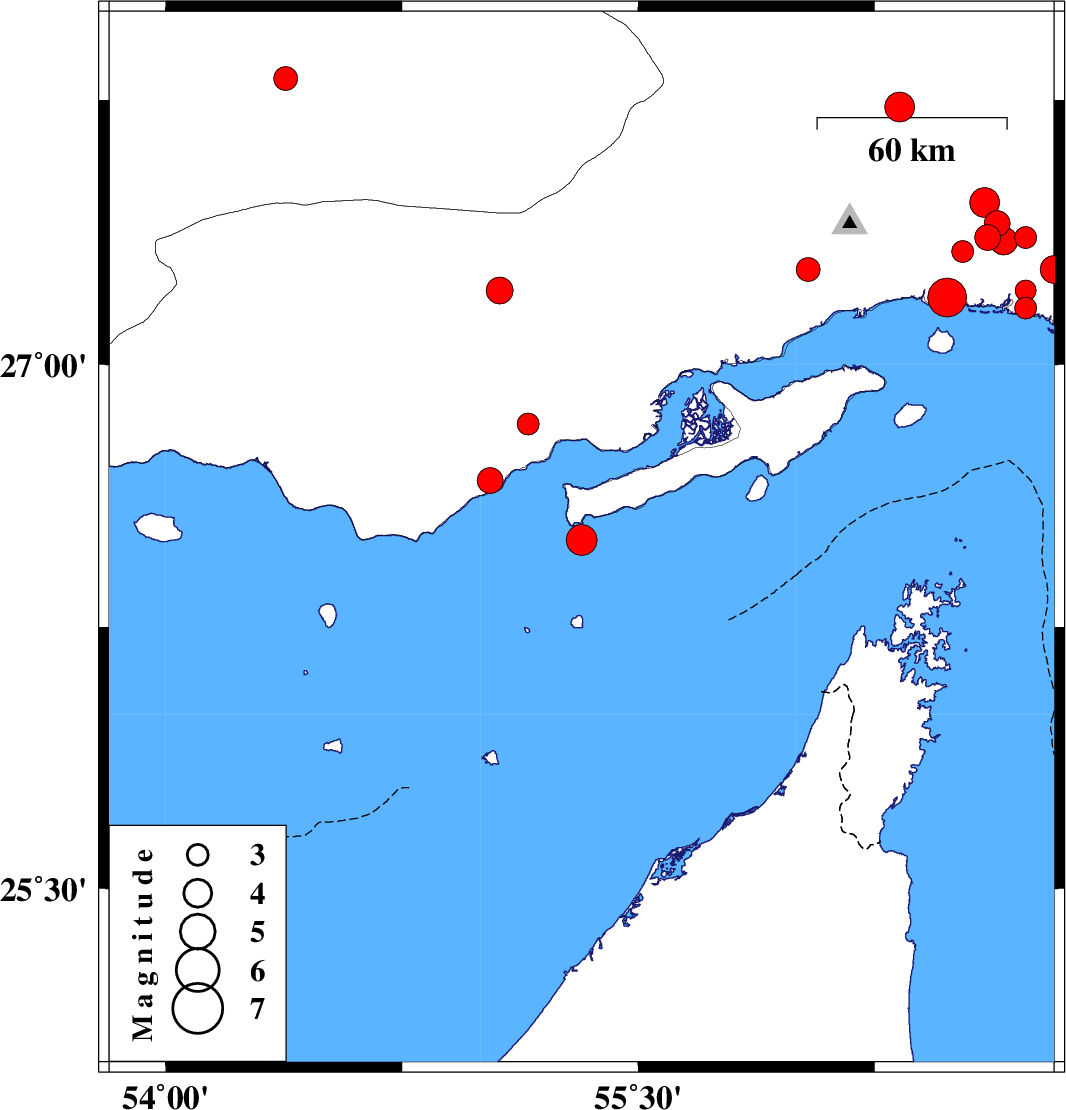 | 2020/01/06 | 17:03:18.2 | 20:33:18.2 | 26.83 | 55.15 | 10 | ML3.1 | Hormozgan Province, 45 km North-East of Bandar-e lengeh | ||