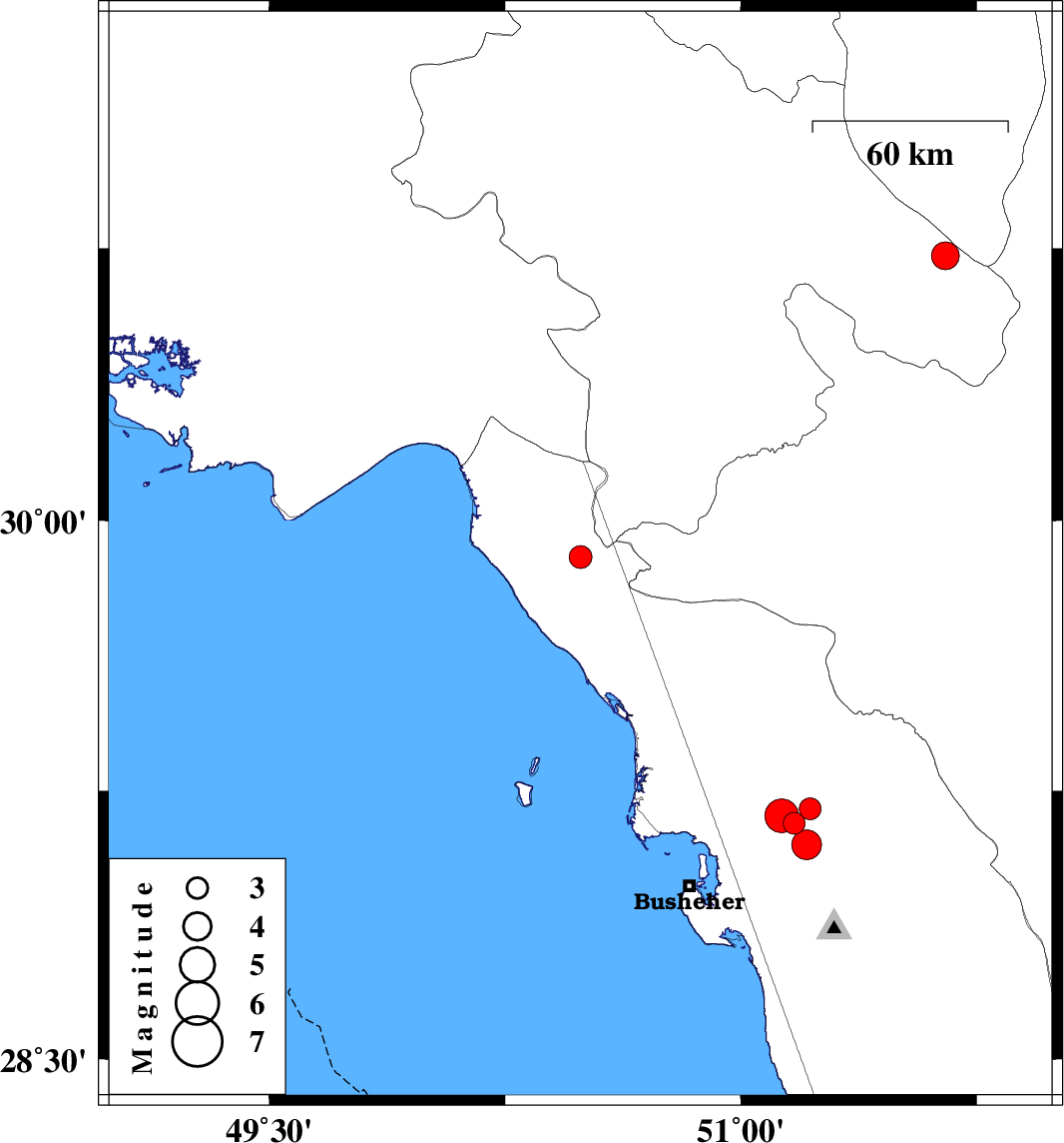 2020/01/08 | 03:19:14.9 | 06:49:14.9 | 29.1 | 51.21 | 10 | ML4.2 | Bushehr Province, 18 km South of Borazjan | ||