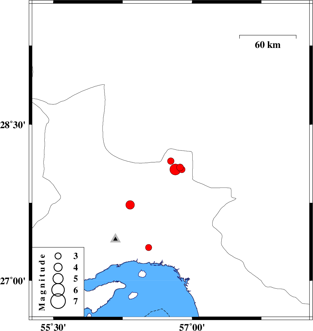 | 2020/01/27 | 00:56:51.5 | 04:26:51.5 | 28.15 | 56.77 | 10 | ML3.2 | Hormozgan Province, 87 km South-East of Hajiabad | ||
