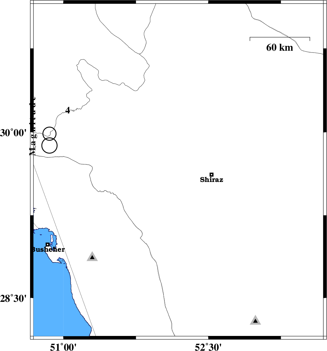 2020/01/27 | 13:28:27.1 | 16:58:27.1 | 29.63 | 52.24 | 10 | ML5.4 | Fars Province, 28 km -West of Shiraz | ||