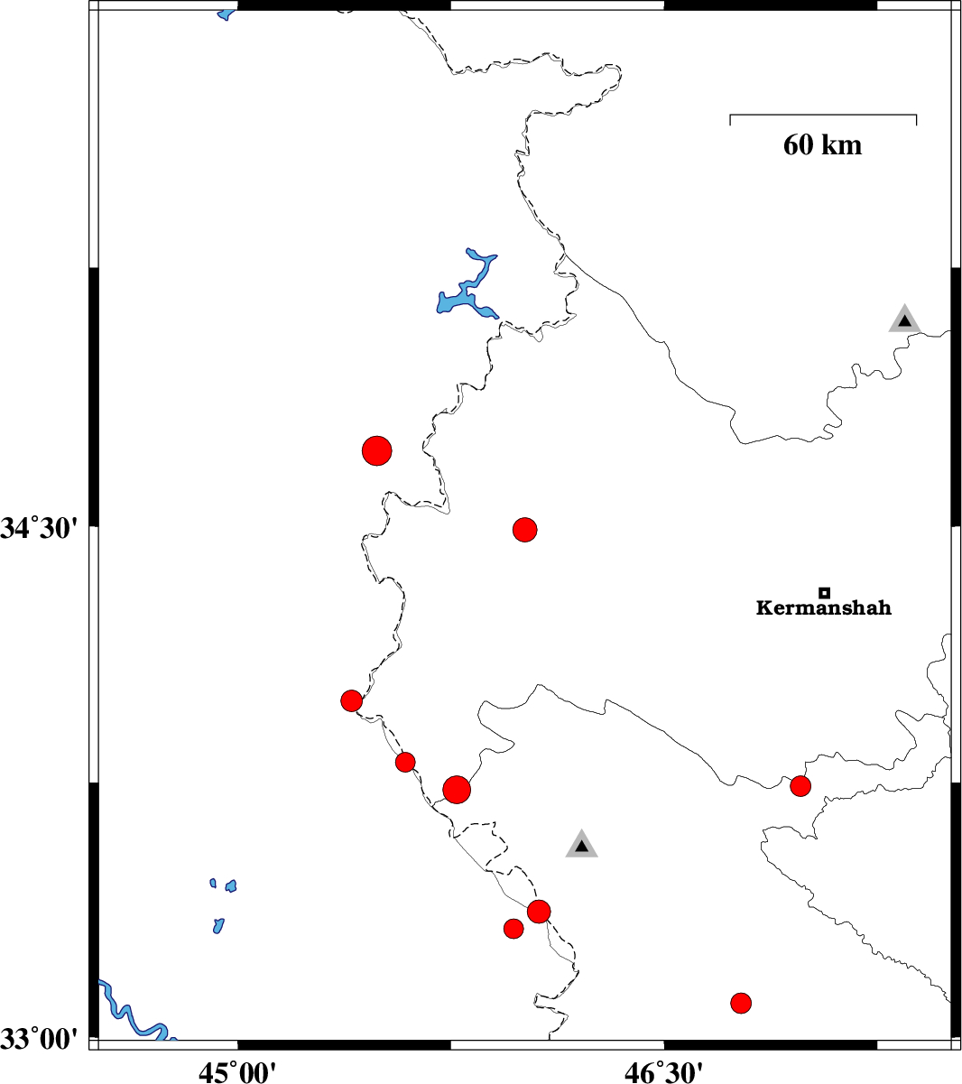 | 2020/01/28 | 06:52:03.2 | 10:22:03.2 | 33.73 | 45.77 | 10 | ML4.4 | Kermanshah Province, 48 km South-West of Gilan-E-Gharb | ||