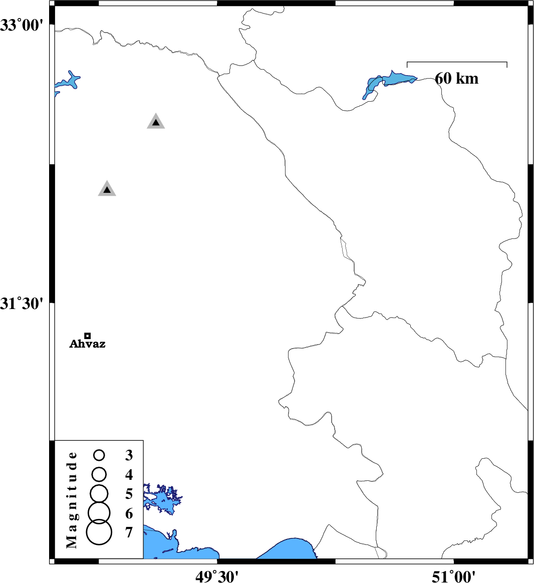 2020/02/14 | 07:53:21.1 | 11:23:21.1 | 31.6 | 49.97 | 10 | ML3.8 | Khoozestan Province, 11 km of Bagh Malek |