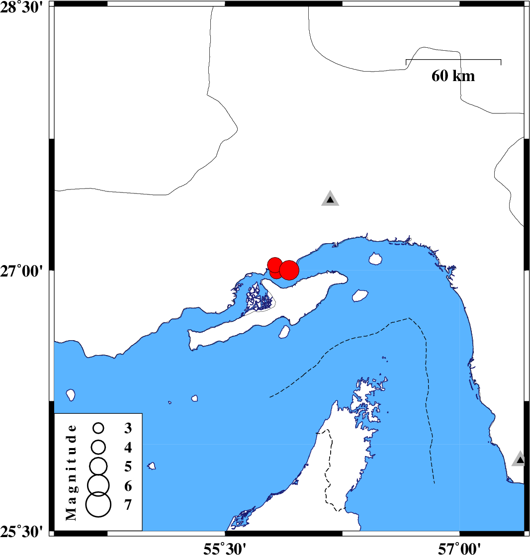 | 2020/02/16 | 12:21:52.1 | 15:51:52.1 | 26.99 | 55.83 | 10 | ML3.9 | Persian Gulf, 43 km -West of Qeshm |