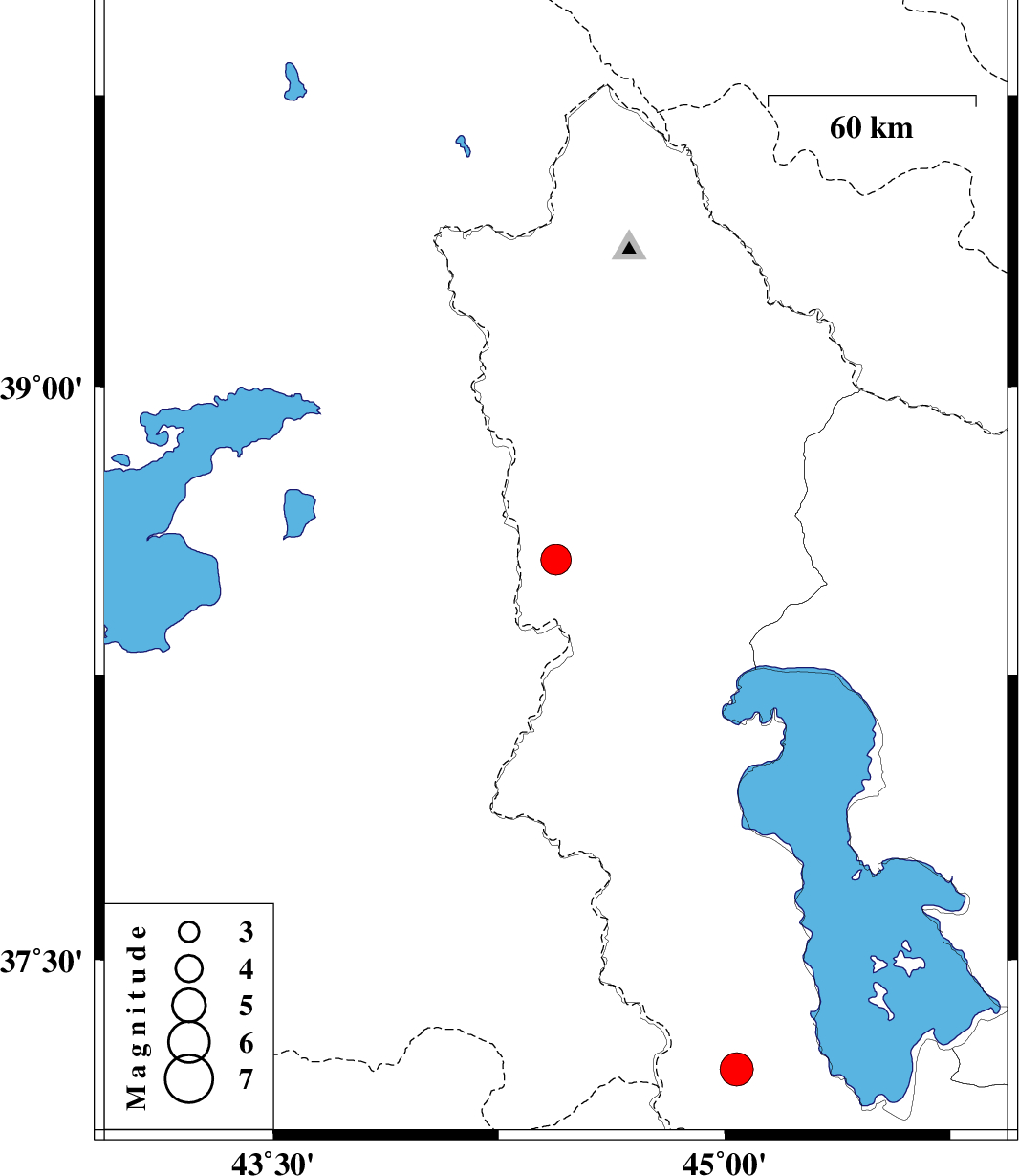 | 2020/01/29 | 18:07:29.8 | 21:37:29.8 | 37.21 | 45.04 | 10 | ML4.9 | Azarbaijan Gharbi Province, 19 km North of Oshnaviyeh |