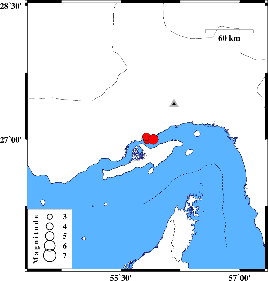 | 2020/02/16 | 12:30:46.8 | 16:00:46.8 | 27 | 55.91 | 15 | ML5.7 | Persian Gulf, 36 km -West of Qeshm | ||