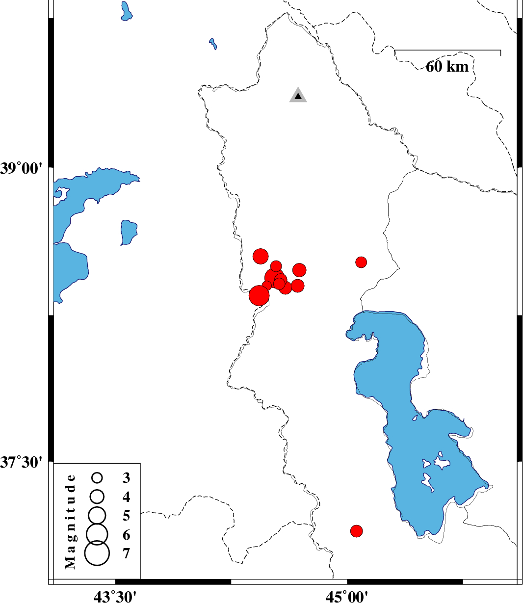 2020/02/16 18:02:13.5 21:32:13.5 38.5544.4410 ML4.5 Azarbaijan Gharbi Province, 44 km -West of Khoy