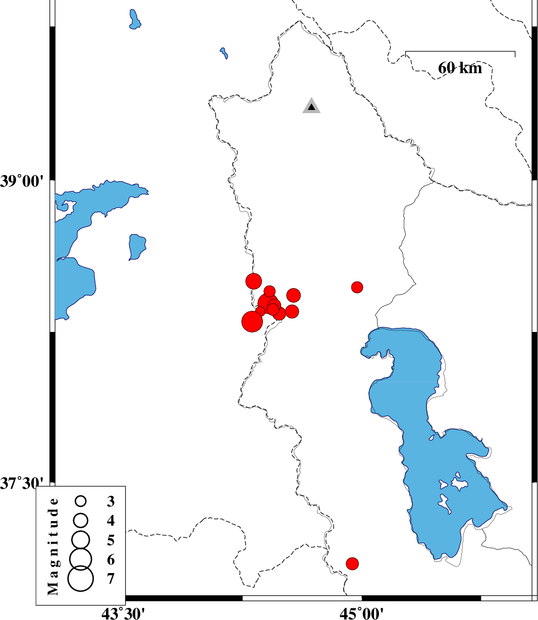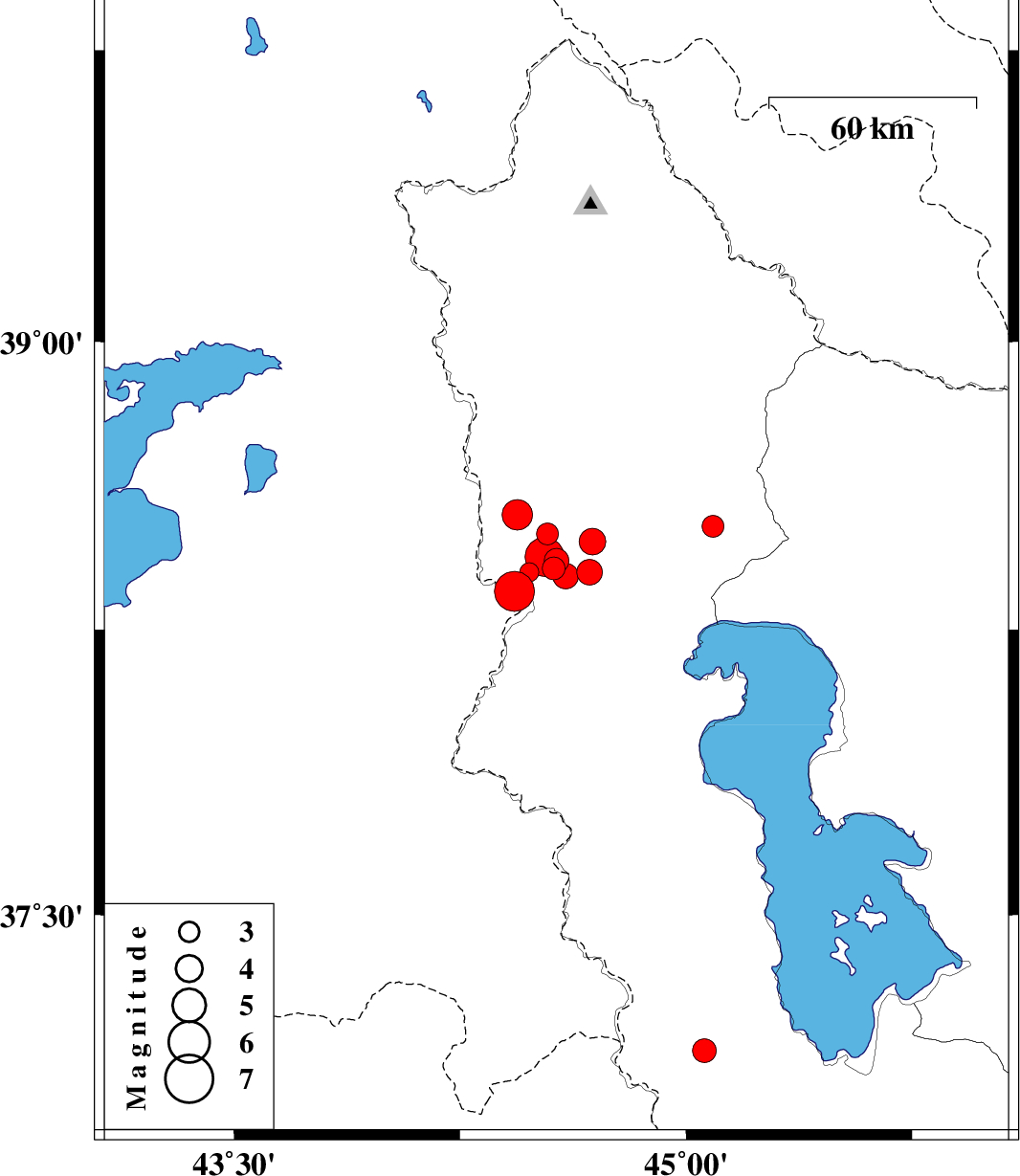 2020/02/16 18:02:13.5 21:32:13.5 38.5544.4410 ML4.5 Azarbaijan Gharbi Province, 44 km -West of Khoy