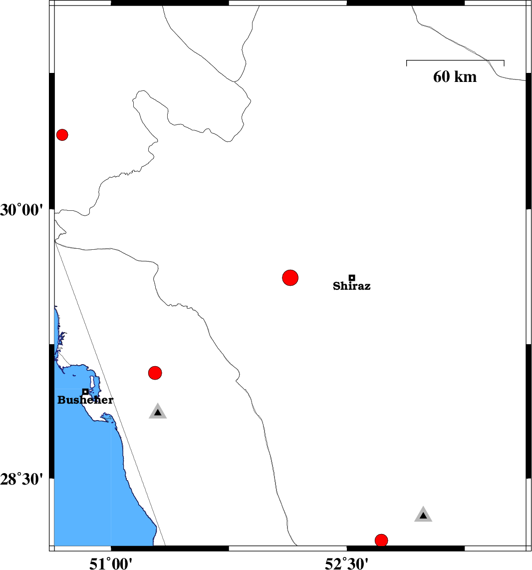 2020/03/11 | 10:24:06.8 | 13:54:06.8 | 29.62 | 52.14 | 10 | ML4.5 | Fars Province, 38 km -West of Shiraz | ||