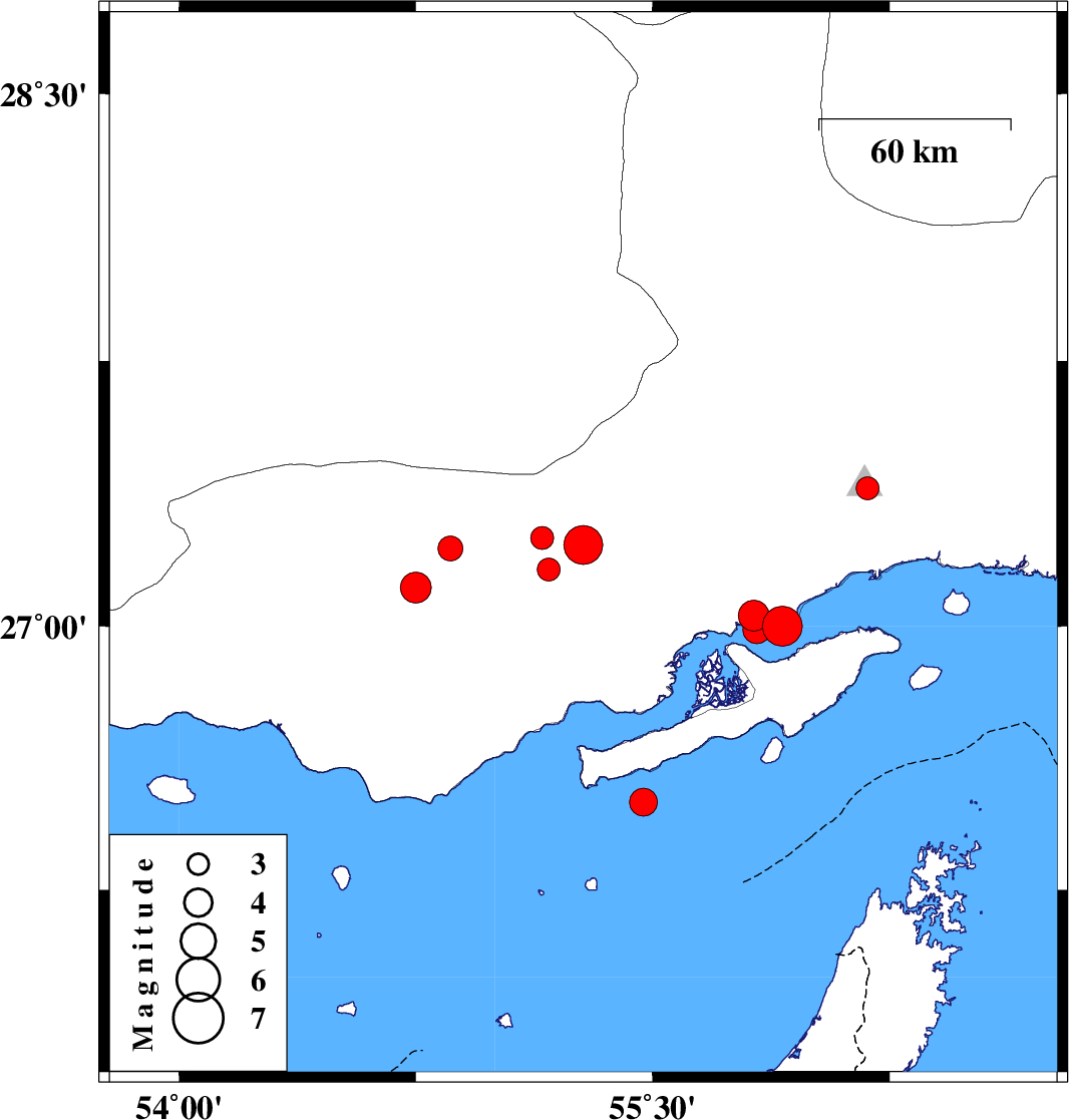 | 2020/02/16 | 12:21:52.1 | 15:51:52.1 | 26.99 | 55.83 | 10 | ML3.9 | Persian Gulf, 43 km -West of Qeshm |