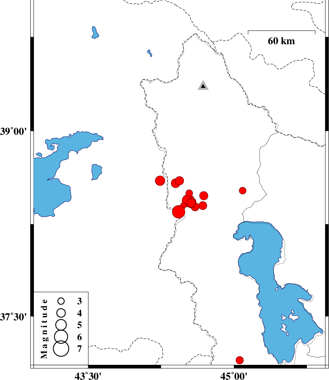 | 2020/02/23 | 16:00:33.8 | 19:30:33.8 | 38.35 | 44.43 | 10 | ML5.9 | Turkey, 35 km North-West of Salmas | ||