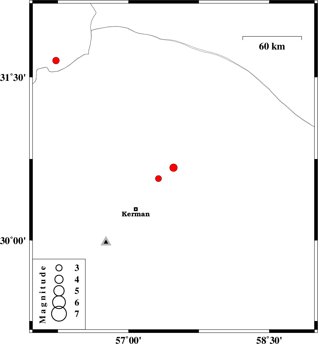| 2020/02/29 | 04:56:13.6 | 08:26:13.6 | 30.57 | 57.32 | 10 | ML3 | Kerman Province, 39 km North-East of Kerman | ||