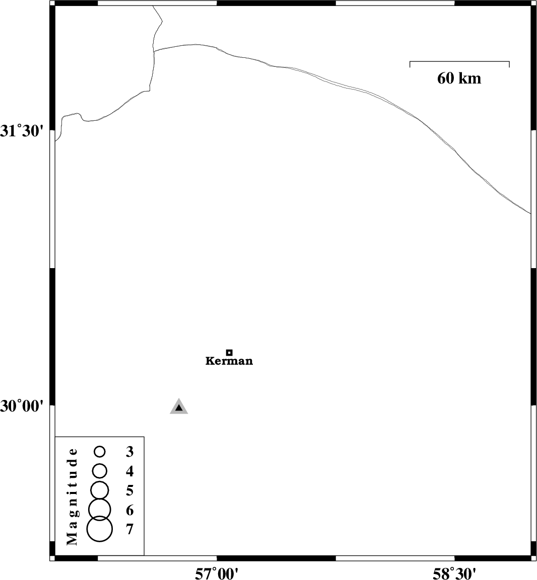 | 2020/03/29 | 03:45:11.8 | 08:15:11.8 | 30.67 | 57.48 | 10 | ML3.7 | Kerman Province, 57 km North-East of Kerman |