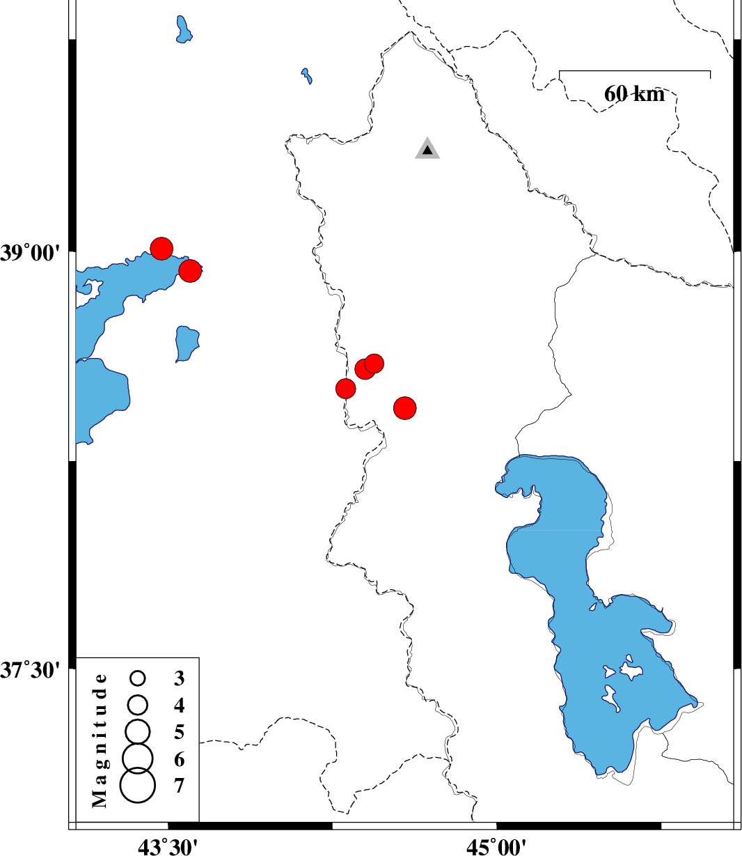 | 2020/04/03 | 09:42:45.8 | 14:12:45.8 | 38.51 | 44.31 | 10 | ML4.1 | Turkey, 63 km South of Seyah Cheshmah | ||