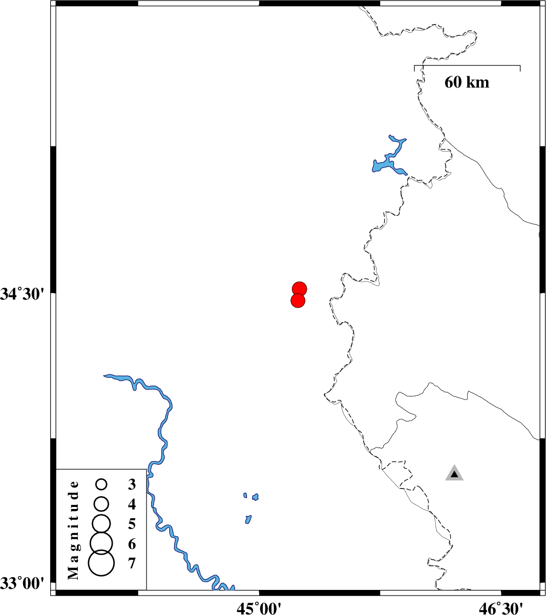 | 2020/04/10 | 13:19:54.8 | 17:49:54.8 | 34.46 | 45.24 | 10 | ML4 | Iraq, 32 km -West of Qasr-E-Shirin | ||