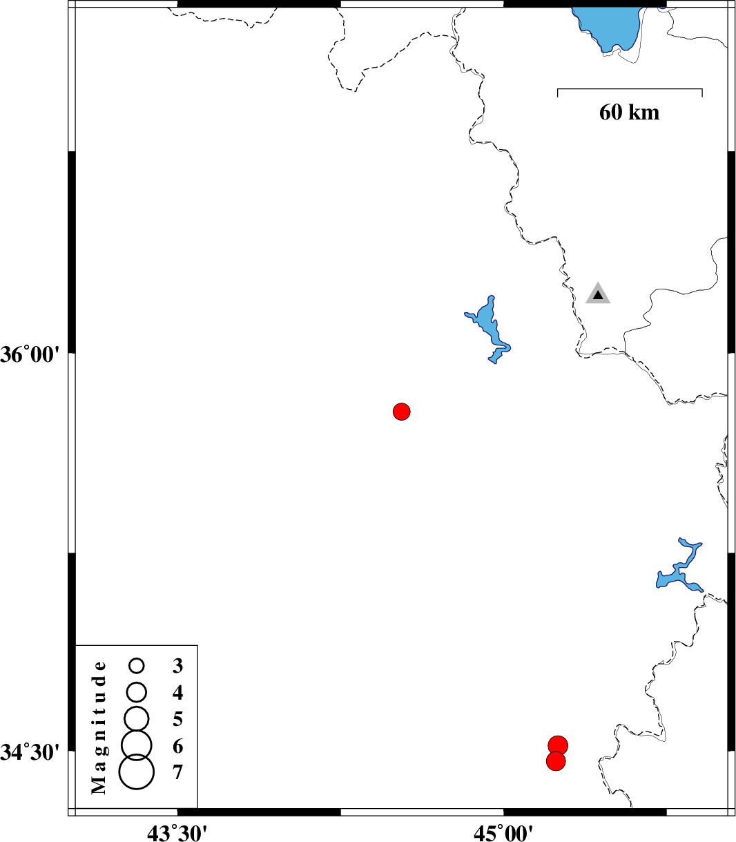 | 2020/04/10 | 13:19:54.8 | 17:49:54.8 | 34.46 | 45.24 | 10 | ML4 | Iraq, 32 km -West of Qasr-E-Shirin | ||