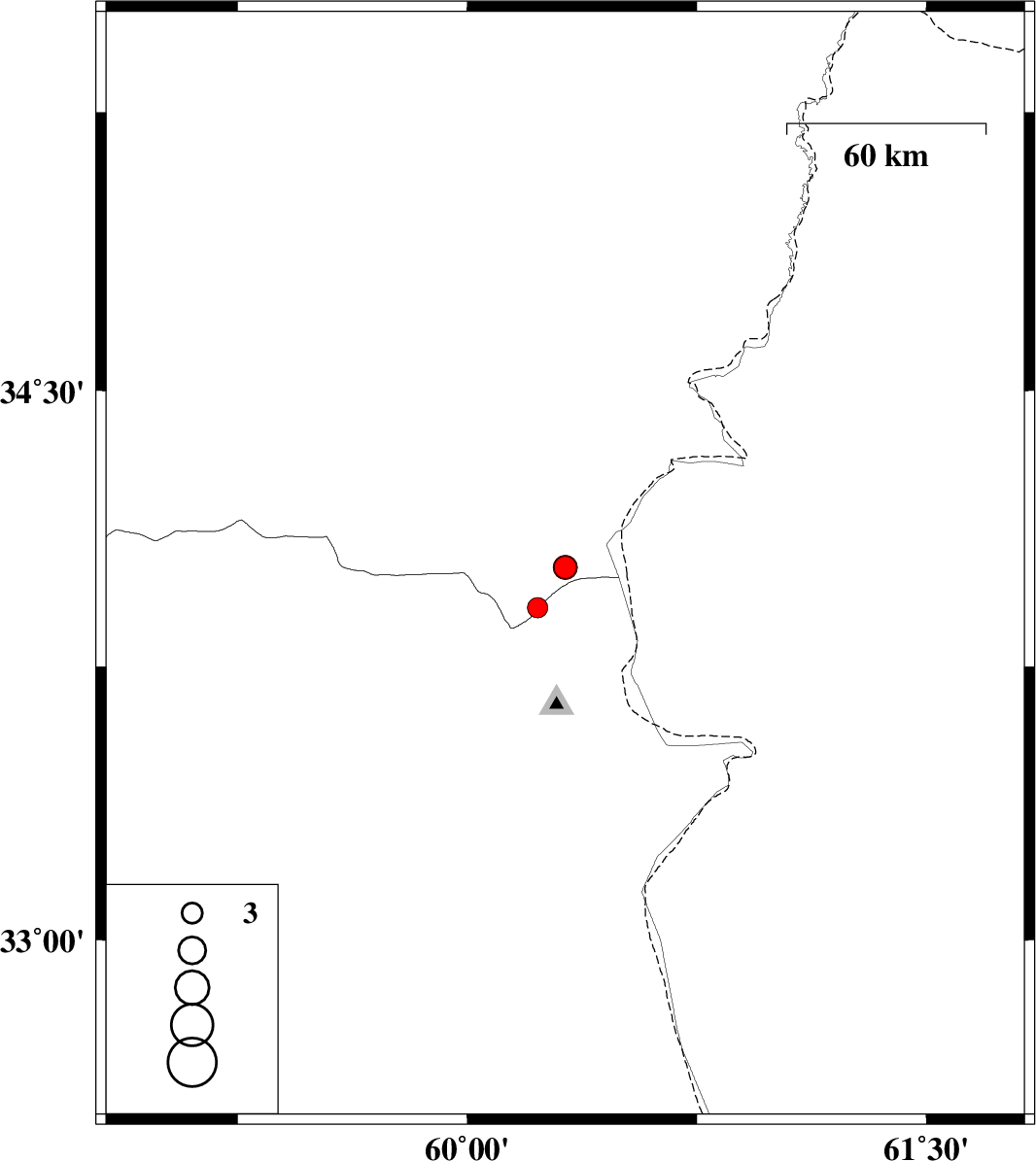 2020/04/13 | 14:01:54.5 | 18:31:54.5 | 34.02 | 60.32 | 10 | ML:3.2 | Khorasan(center) Province, 63 km South-East of Khaf | ||