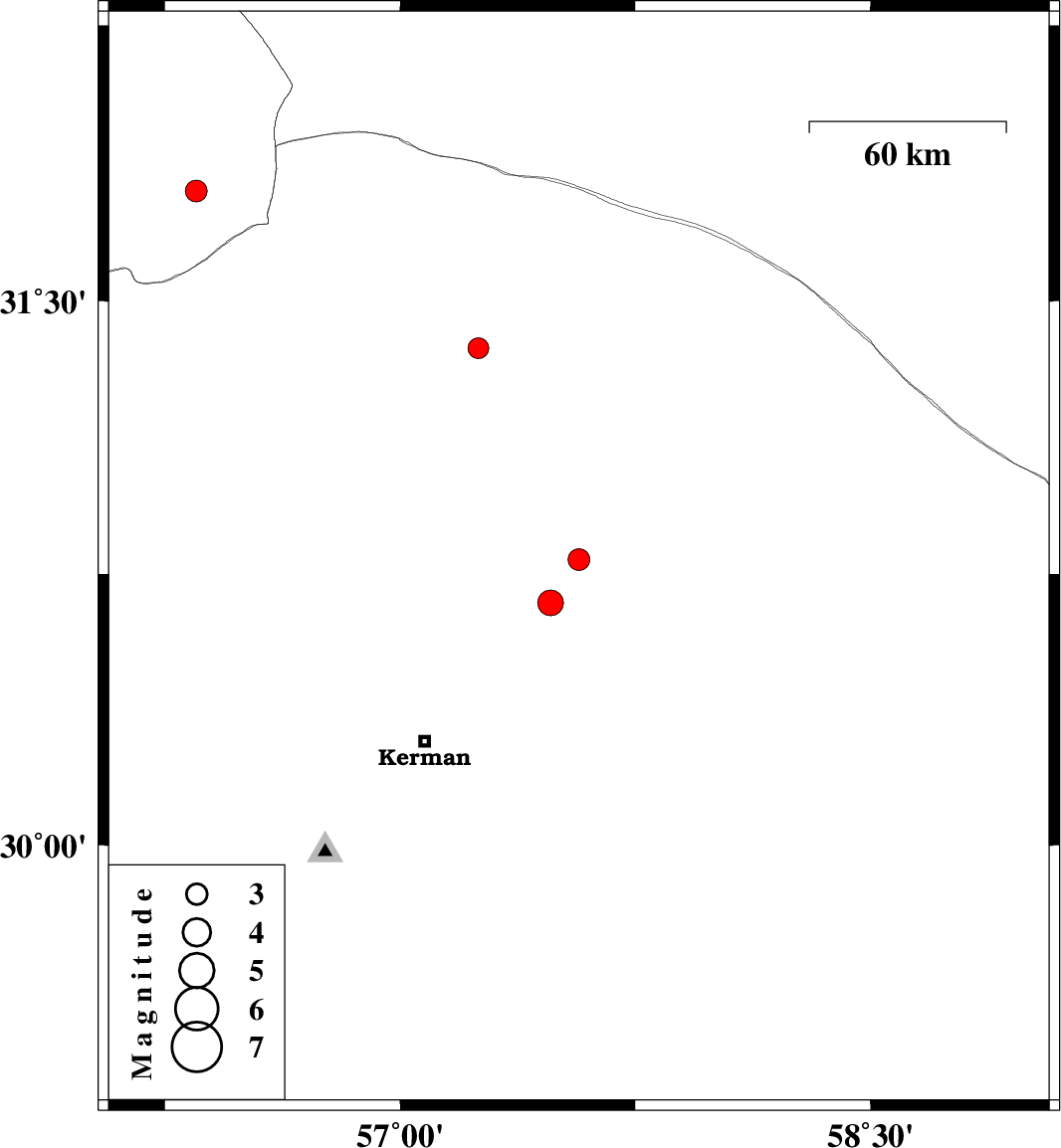 | 2020/03/29 | 03:45:11.8 | 08:15:11.8 | 30.67 | 57.48 | 10 | ML3.7 | Kerman Province, 57 km North-East of Kerman |