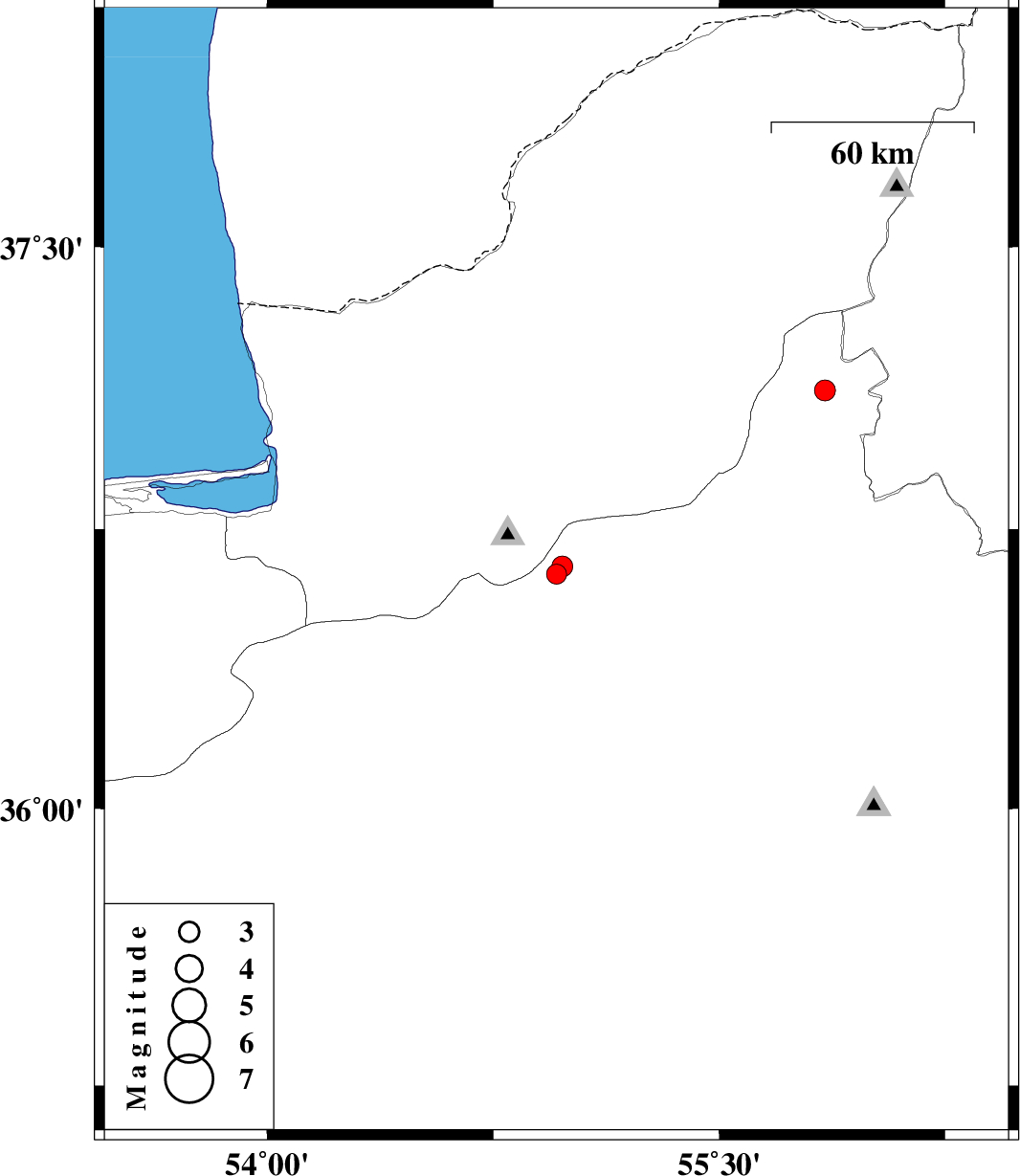 | 2020/04/24 | 23:00:10.7 | 03:30:10.7 | 36.63 | 54.96 | 10 | ML2.9 | Semnan Province, 23 km North of Shahrud | ||