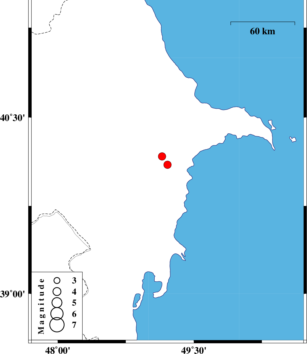 | 2020/04/25 | 14:24:28.0 | 18:54:28.0 | 40.1 | 49.21 | 10 | ML3.8 | Azerbaijan, 66 km South-West of Baku |