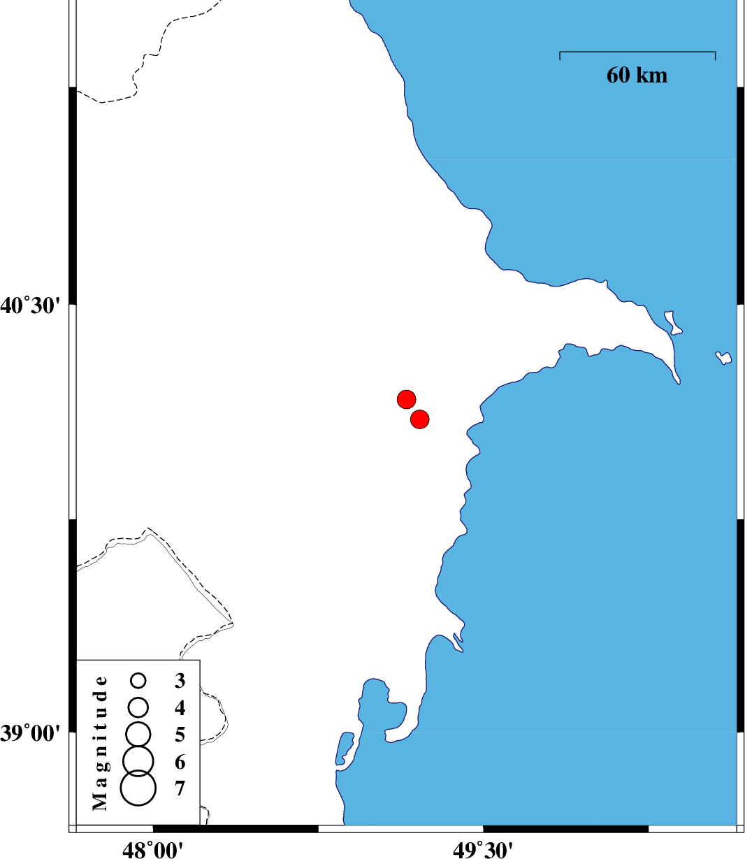 | 2020/04/25 | 14:24:28.0 | 18:54:28.0 | 40.1 | 49.21 | 10 | ML3.8 | Azerbaijan, 66 km South-West of Baku |