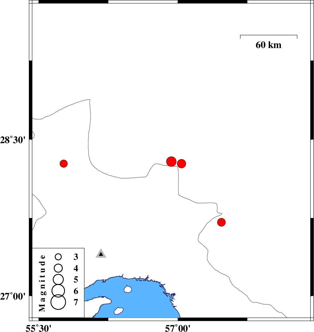 | 2020/04/03 | 16:06:39.2 | 20:36:39.2 | 27.71 | 57.47 | 10 | ML4 | Kerman Province, 33 km North of Manujan |