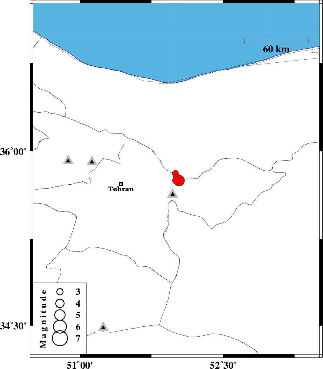 2020/05/07 20:18:21.9 00:48:21.9 35.7552.0410 ML5.1 Tehran Province, 5 km of Damavand