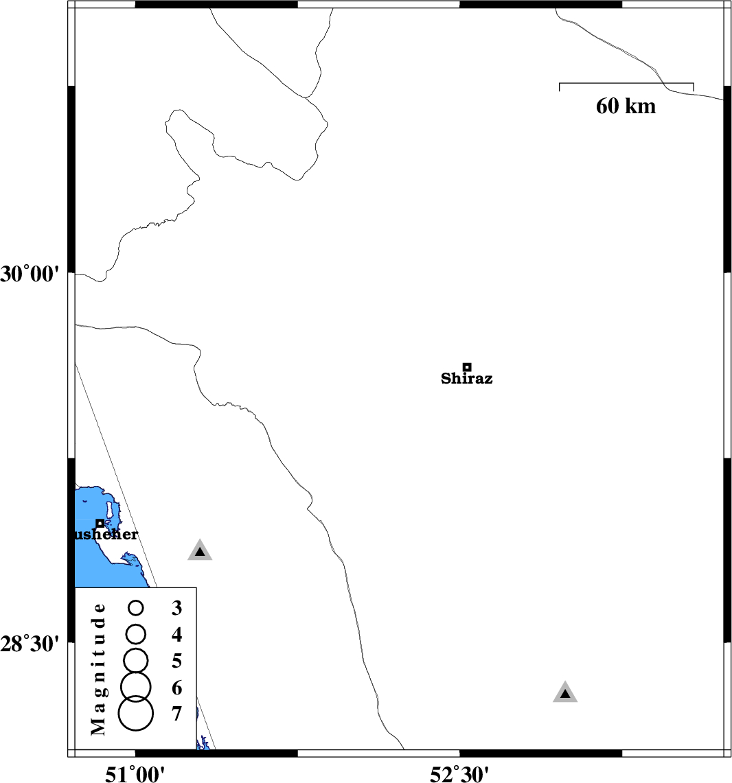 | 2020/05/16 | 03:10:34.8 | 07:40:34.8 | 29.56 | 52.22 | 10 | ML3.6 | Fars Province, 31 km -West of Shiraz |