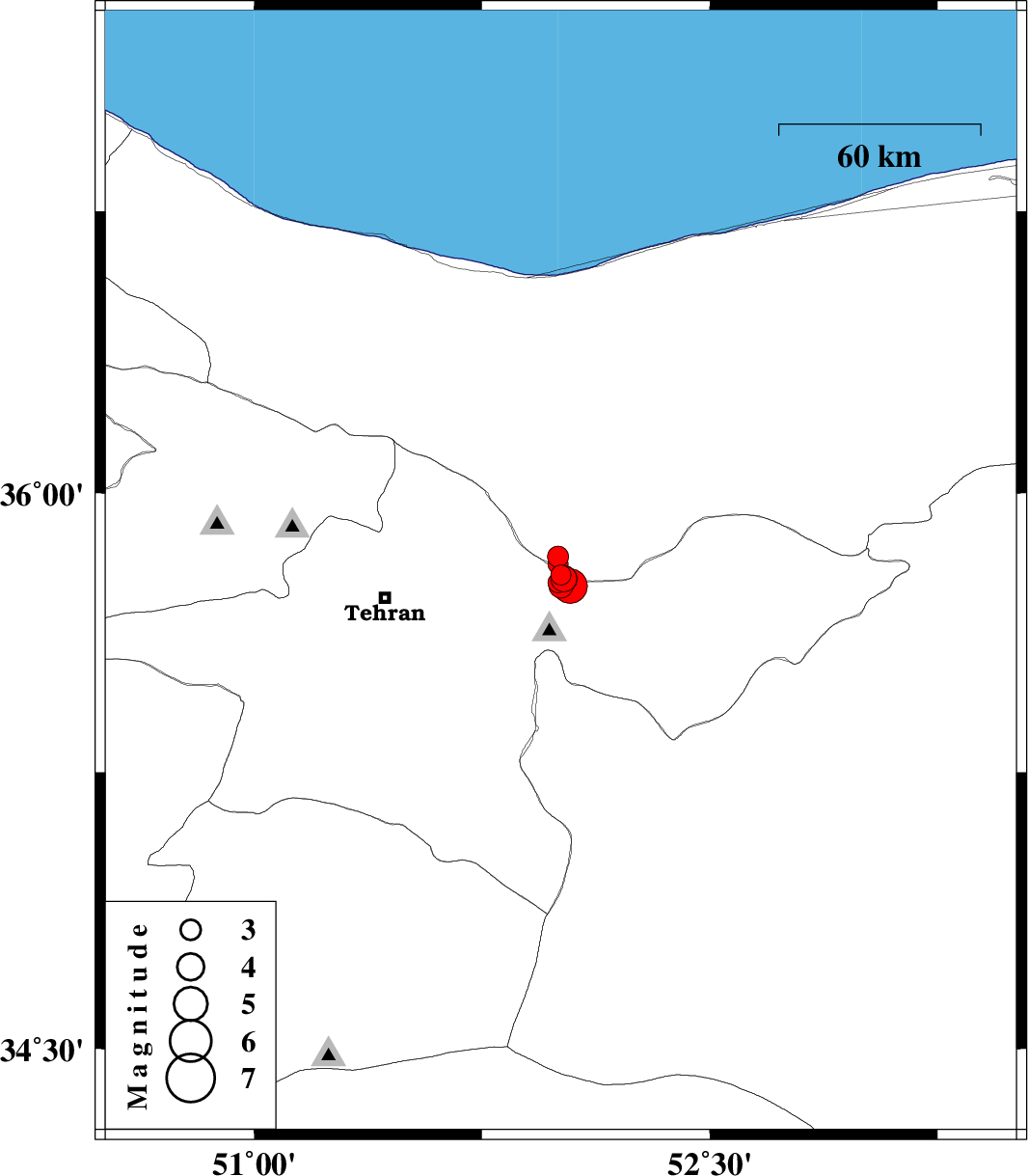 | 2020/05/07 | 21:49:13.6 | 02:19:13.6 | 35.77 | 52.02 | 12 | ML3.9 | Tehran Province, 8 km of Damavand | ||