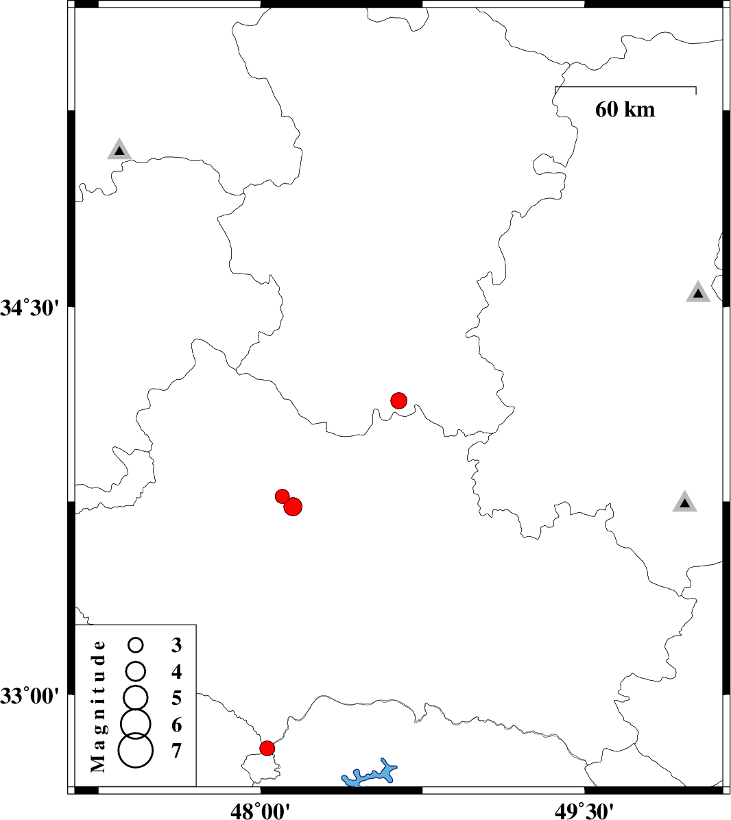 | 2020/05/10 | 21:10:15.3 | 01:40:15.3 | 33.77 | 48.1 | 10 | ML3 | Lorestan Province, 22 km -West of Aleshtar | ||