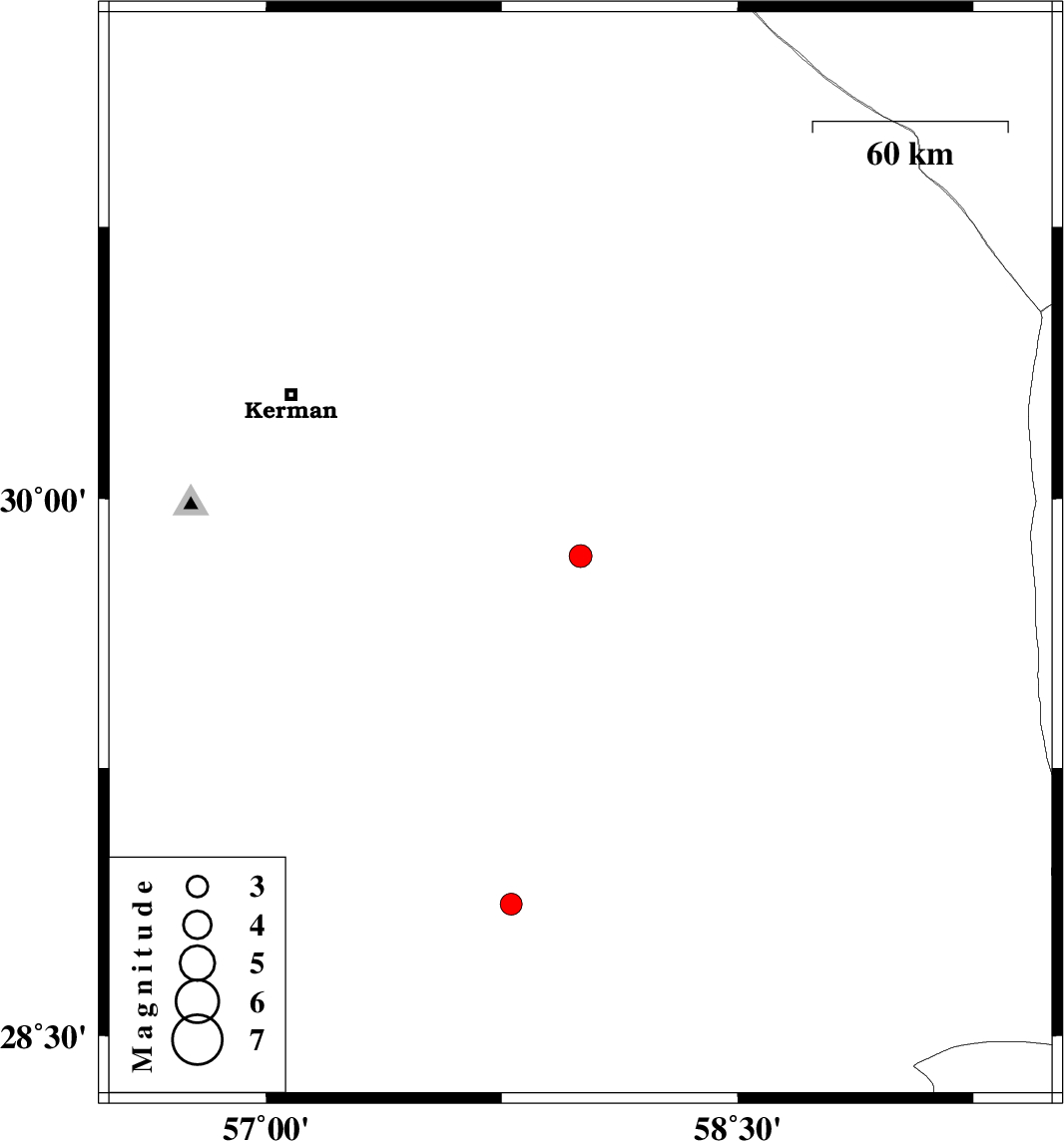 2020/06/06 | 20:00:33.6 | 00:30:33.6 | 28.87 | 57.78 | 10 | ML3.1 | Kerman Province, 23 km North of Jiroft |