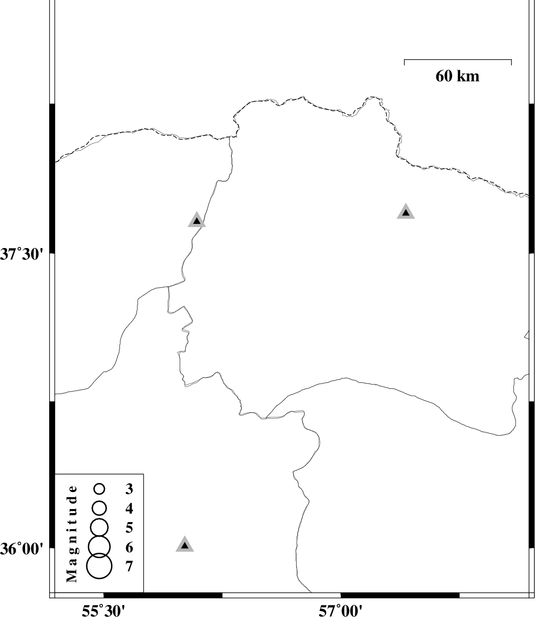 | 2020/06/09 | 07:12:37.3 | 11:42:37.3 | 37.27 | 56.69 | 10 | ML3.7 | Khorasan(north) Province, 38 km South-West of Ashkhaneh |