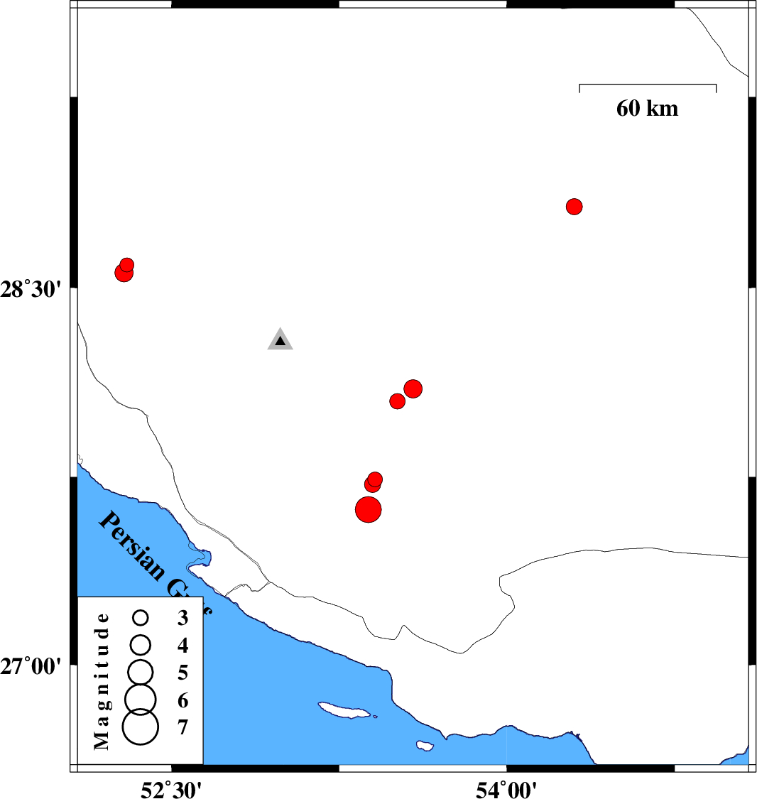 | 2020/06/14 | 18:05:59.2 | 22:35:59.2 | 27.62 | 53.38 | 10 | ML5.2 | Fars Province, 38 km North-East of Lamerd |