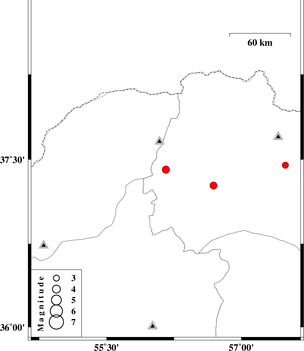 | 2020/06/09 | 07:12:37.3 | 11:42:37.3 | 37.27 | 56.69 | 10 | ML3.7 | Khorasan(north) Province, 38 km South-West of Ashkhaneh |