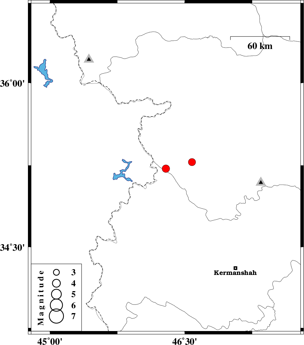 | 2020/06/18 | 19:42:40.4 | 00:12:40.4 | 35.28 | 46.58 | 10 | ML3.7 | Kurdistan Province, 32 km North-East of Paveh |